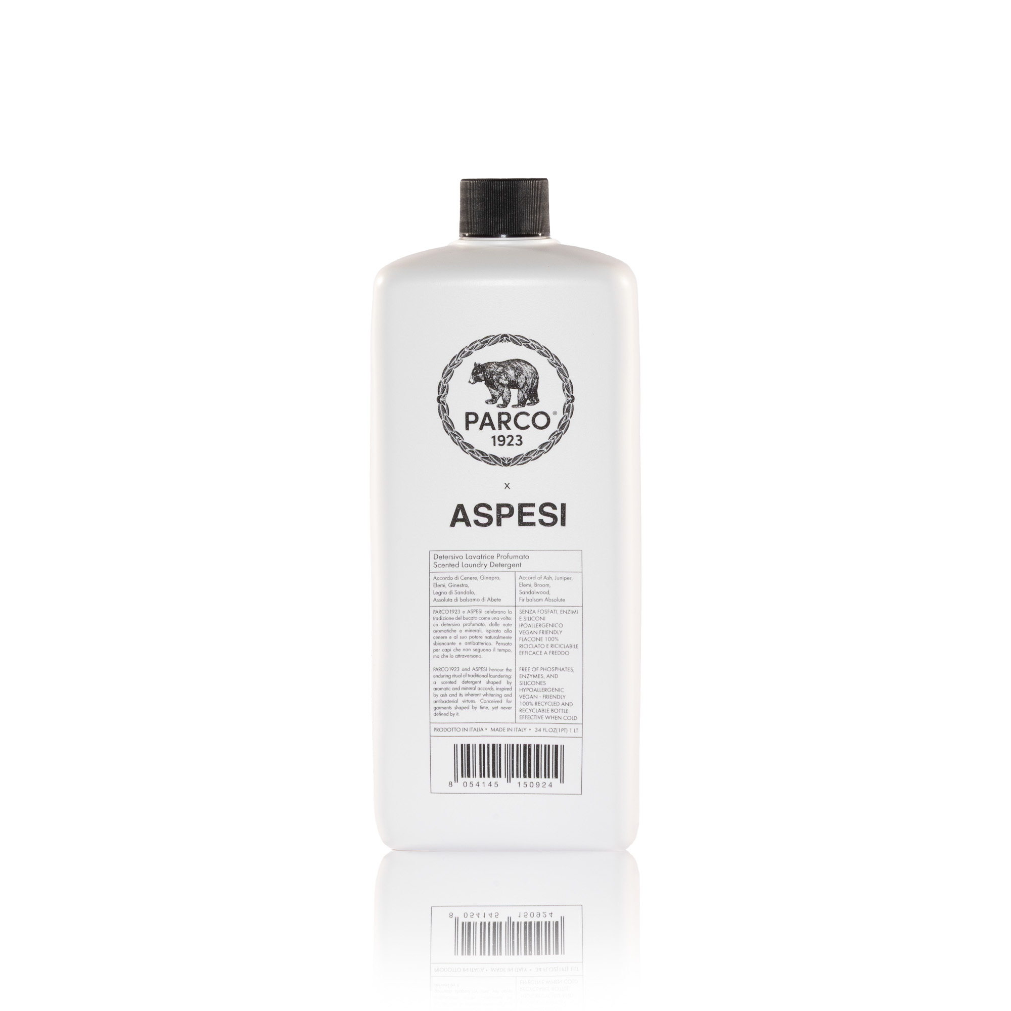 PARCO1923 and ASPESI share a clear vision of quality: respect for materials, attention to detail, and a rejection of the superfluous. From this meeting comes a detergent created for fine garments and for all fabrics that deserve to endure over time.